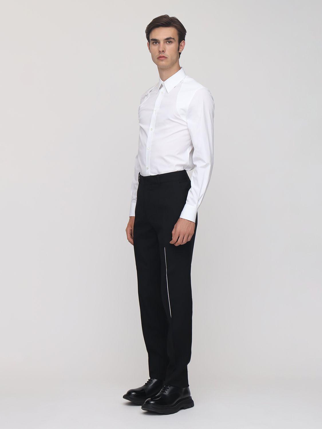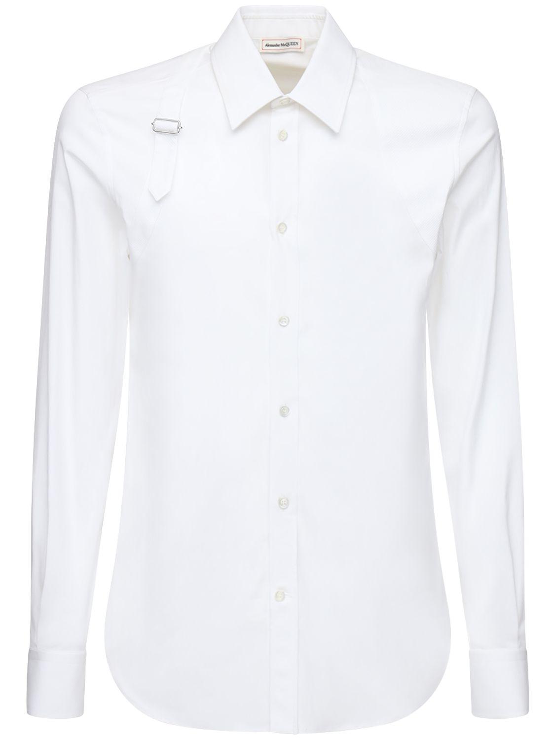 Alexander McQueen - 弹力纯棉衬衫 - 白色 | Luisaviaroma - 正面纽扣开合.