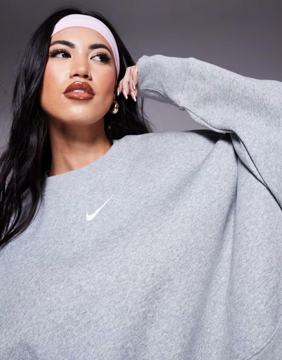 Nike mini swoosh over-oversized crop sweatshirt in grey and sail
