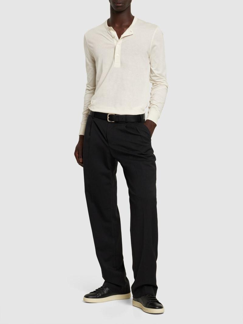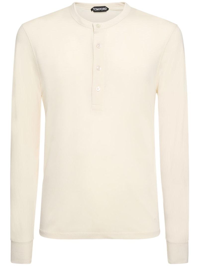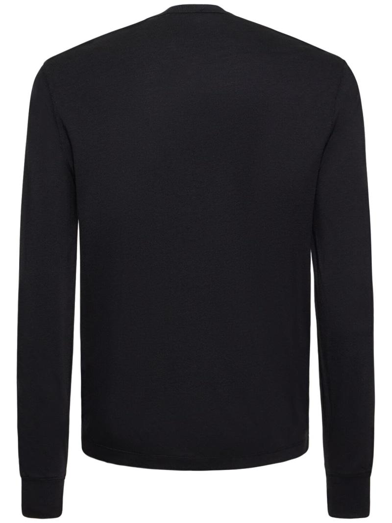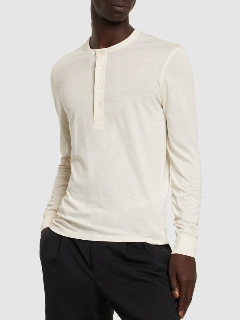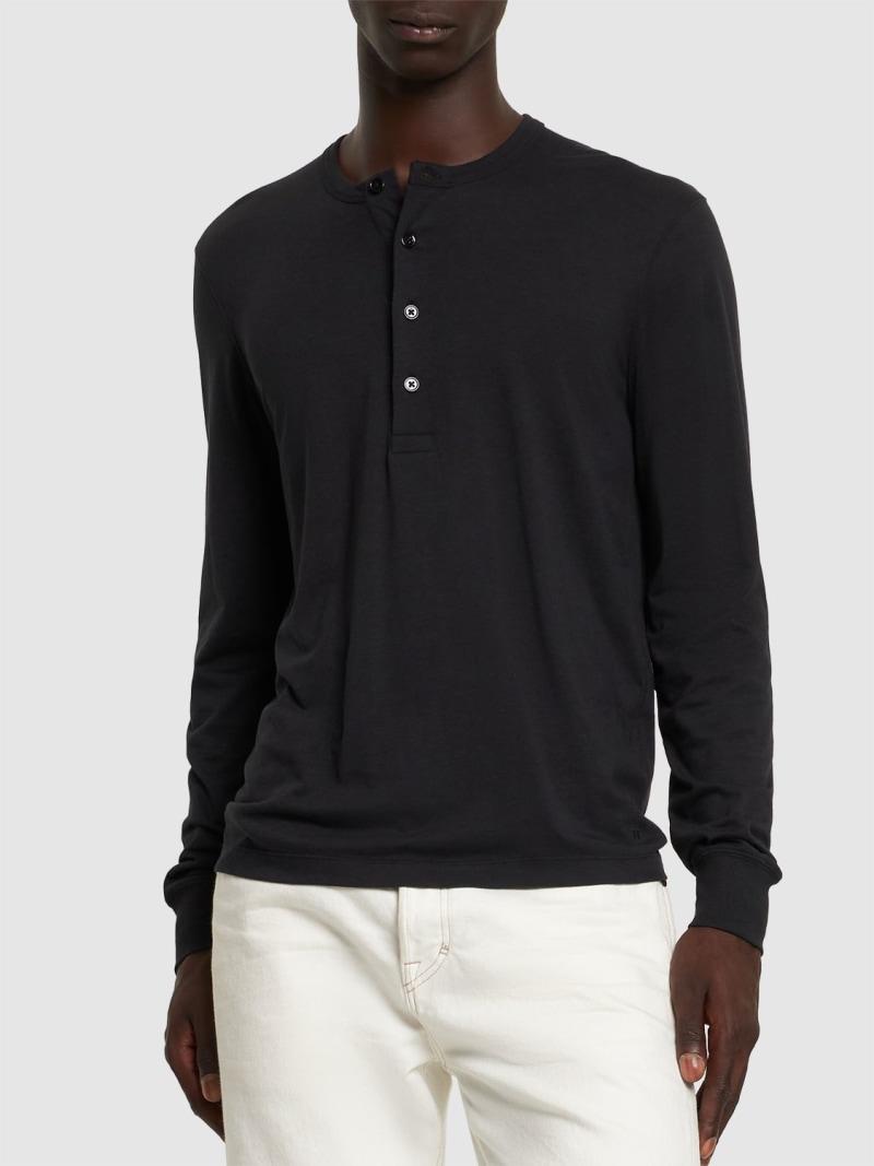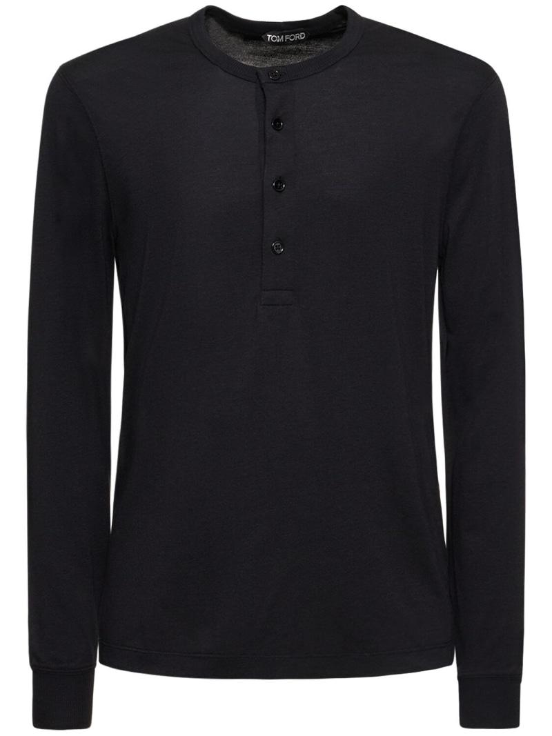 Henley lyocell long sleeve t-shirt - Black - Men - Tom Ford - Front half button closure.