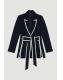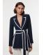 Compact Stretch Tailored Belted Tipped Detail Blazer
