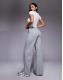 Nike mini swoosh high rise wide leg joggers in grey and sail