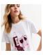 When it's wine-o-clock, this T-shirt is a fun option. The jersey shape is printed with a red wine print along with the lettering, 'Give Rouge'.