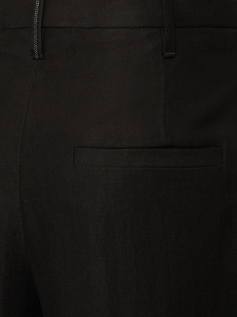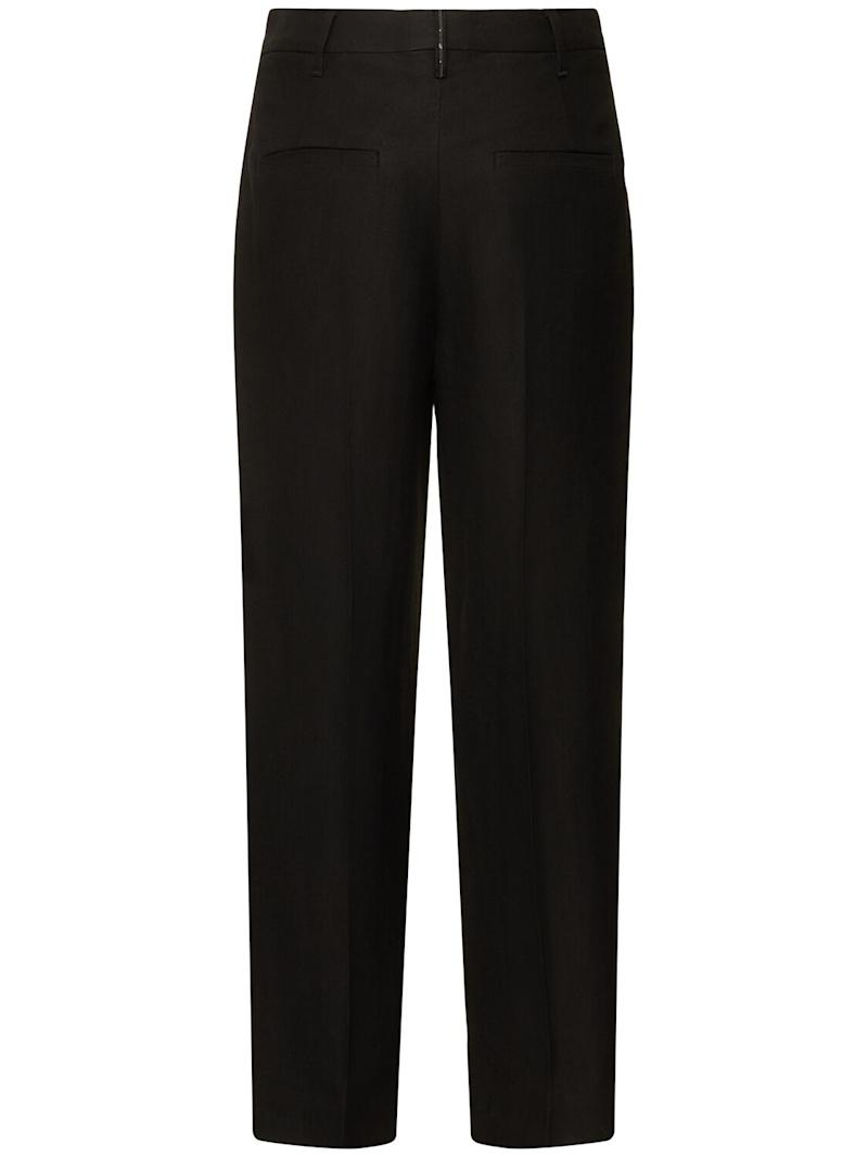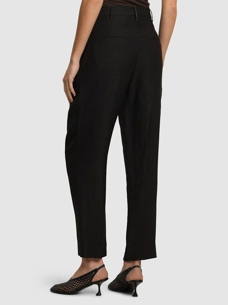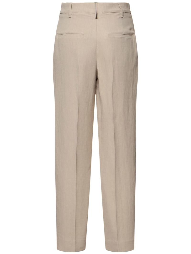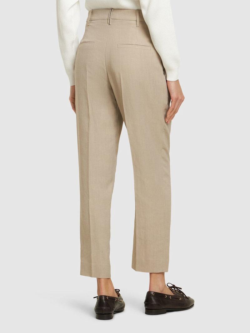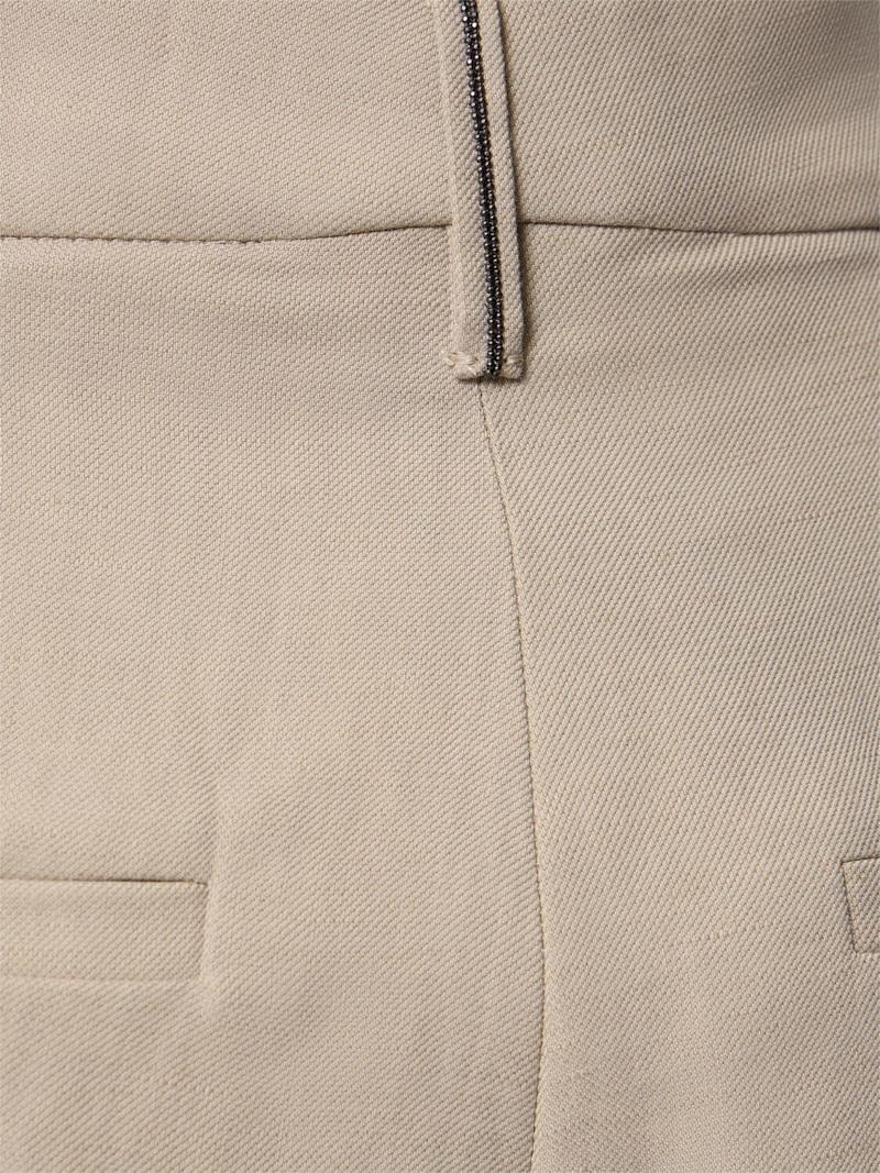 光滑亚麻混纺斜纹短款裤子 - 米黄色 - 女士 - Brunello Cucinelli - 隐藏式正面粘扣开合.