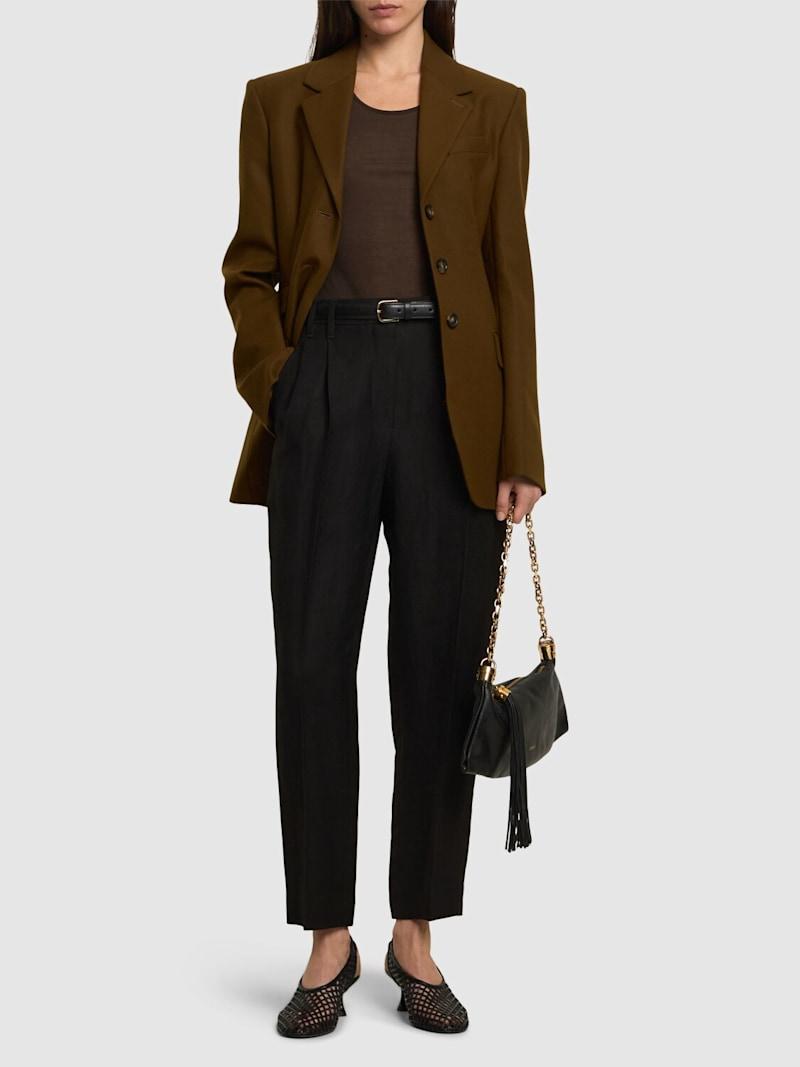 光滑亚麻混纺斜纹短款裤子