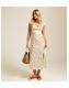 This playful midi dress combines an ultra-flattering fit with a vibrant tile print, perfect for summer escapes or weekend brunches. The ruffles and front slit add chic finishing touches.