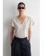 This modern piece offers a renewed take on the classic T-shirt. It's crafted from soft cotton-jersey in a muted ivory tone and features a softly sculpted shape with a V-neckline, petal-style sleeves and subtle pintucked detailing at the waist.\u0026nbsp;Slim fit\u0026nbsp;Shell: 100% Cotton. Excluding trims / Machine wash\u0026nbsp;Back length of size S is 59.4cm / Model wears a size S