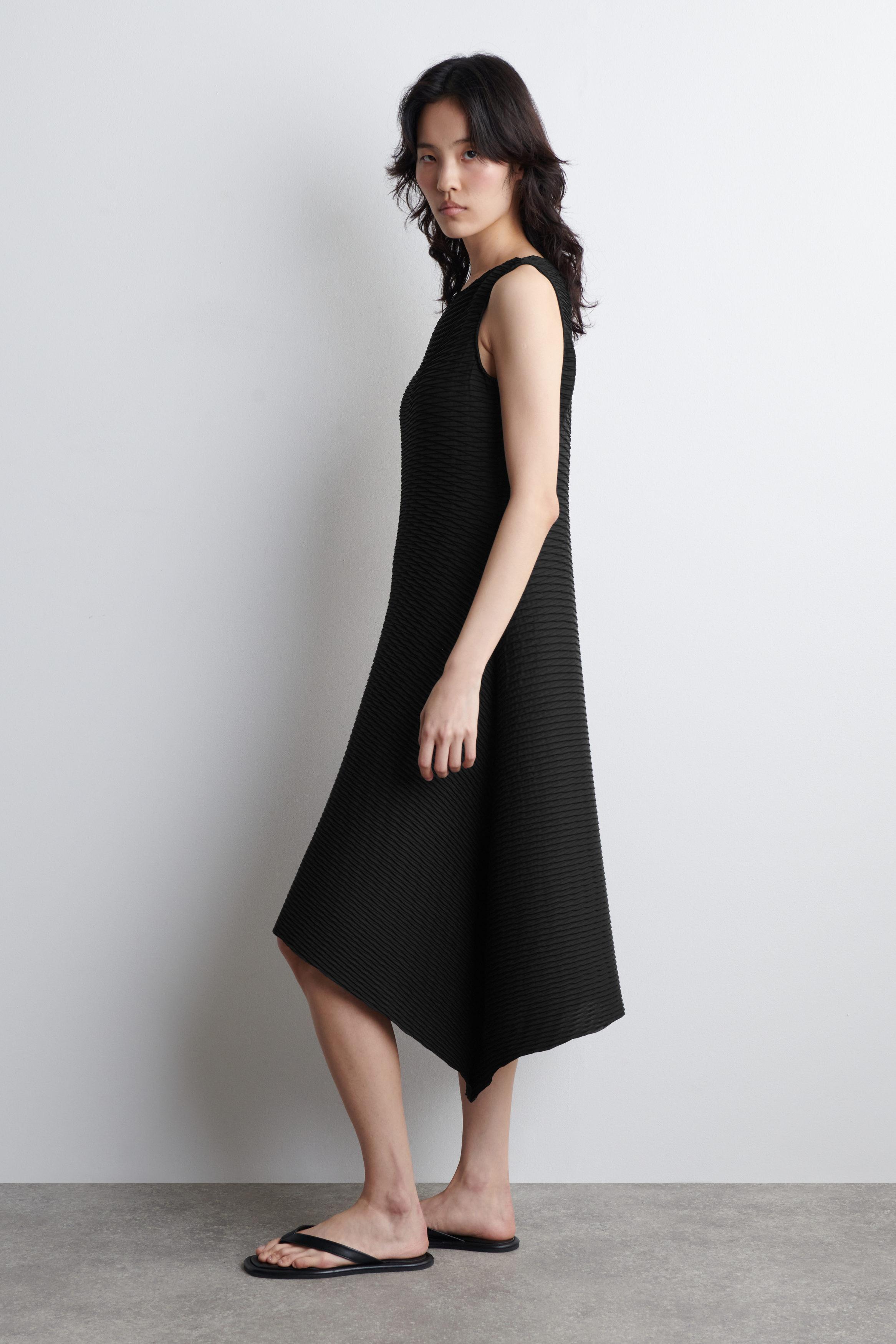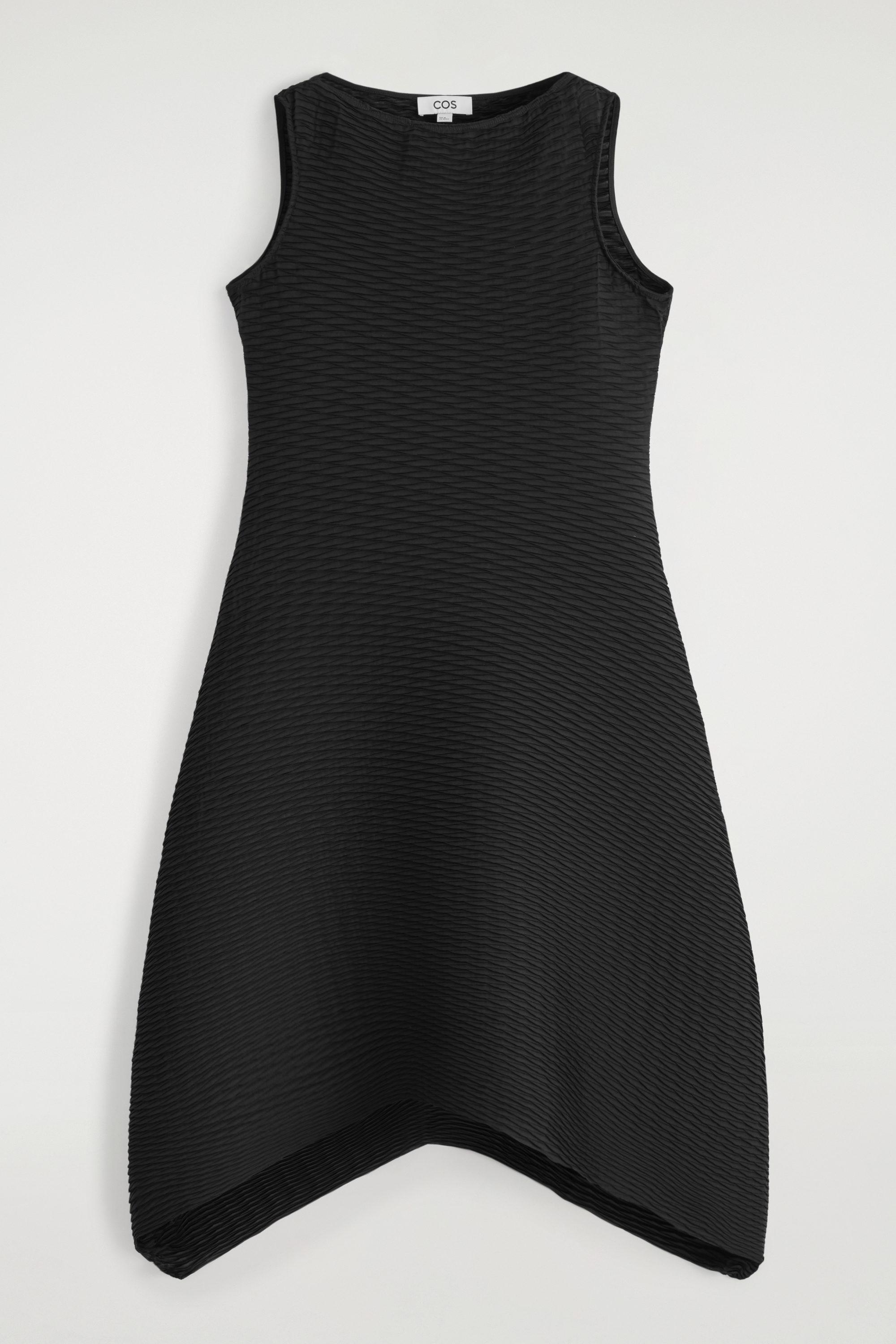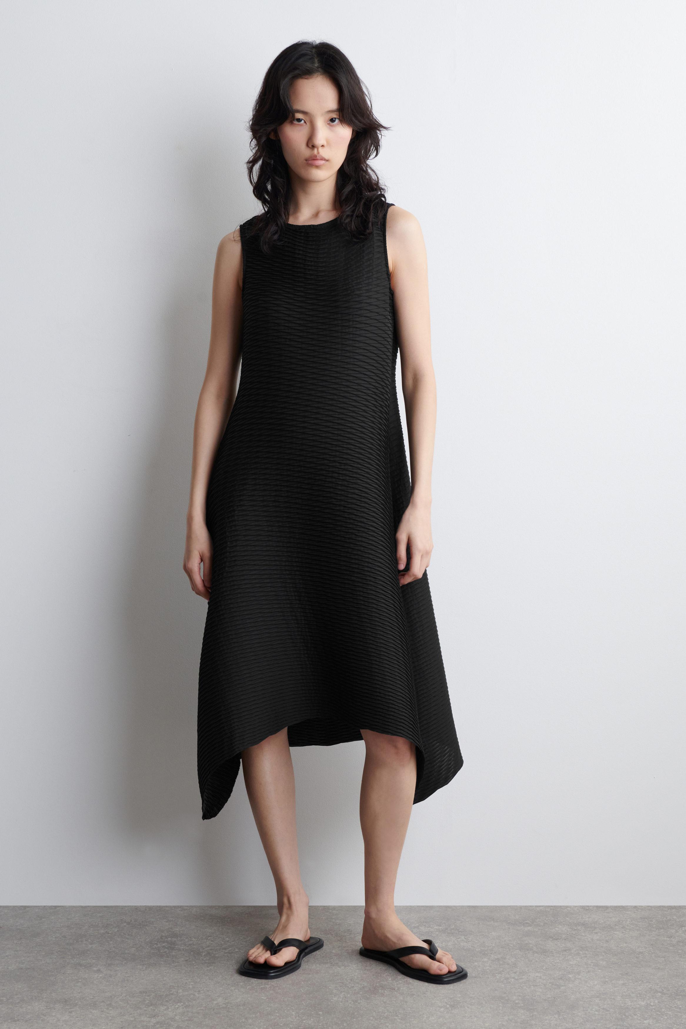 Debuted on the Spring Summer 2025 runway, this striking dress has a sculptural silhouette that falls with buoyant movement. It's made from structured, springy fabric with all-over rippled folds that create surface interest, while the neckline and curved hem are laser-cut for a precise finish.\u0026nbsp;Regular fitRecycled polyester is polyester made from PET bottles or end-of-life textile waste. The PET bottles or textile waste is mechanically recycled and processed into new yarn.\u0026nbsp;Shell: 100% Recycled polyester. Excluding trims / Machine wash\u0026nbsp;Back length of size EU 36 is 102cm / Model wears a size EU 36
