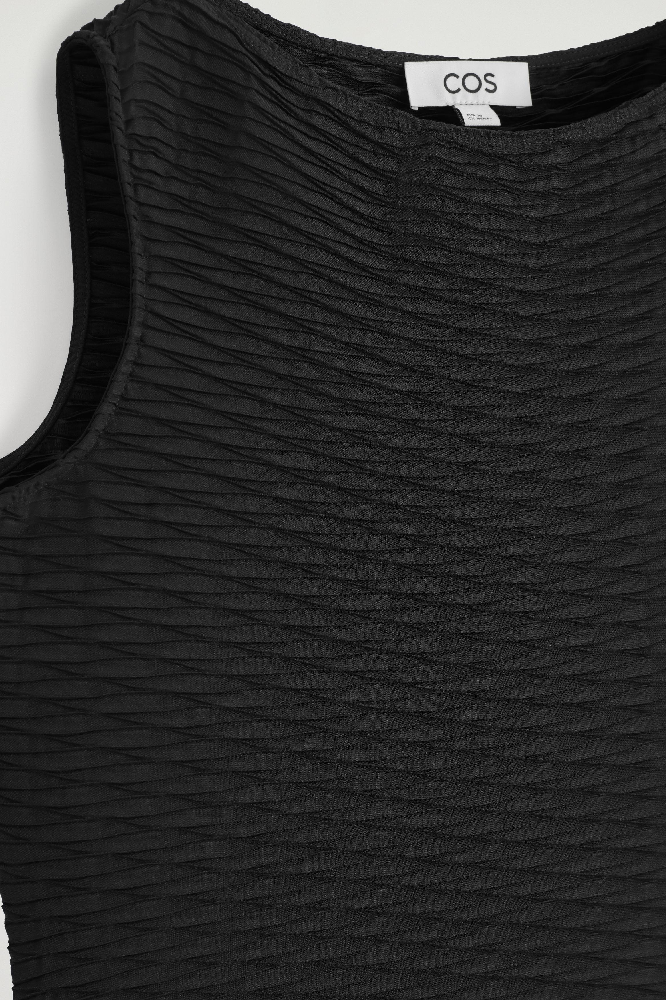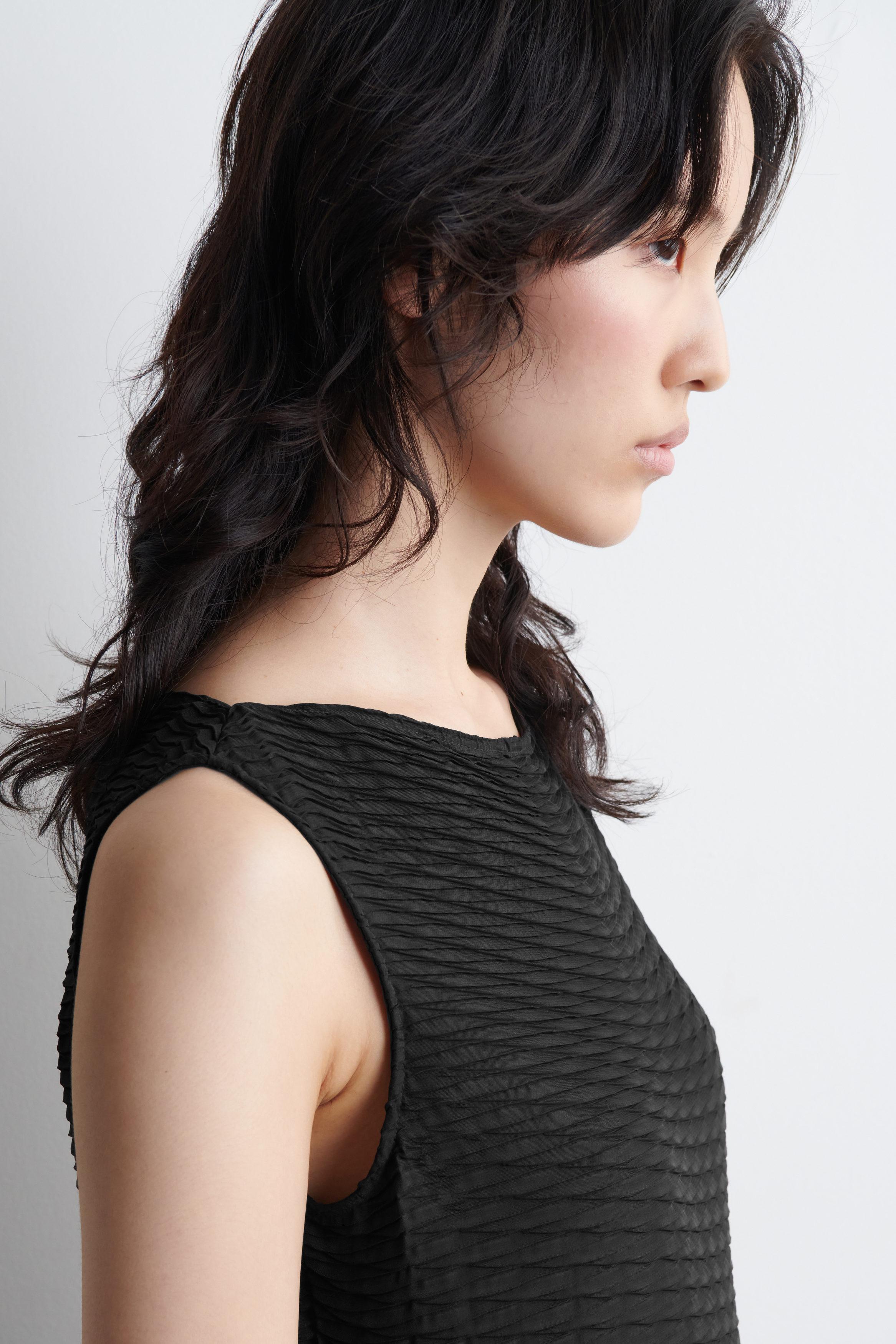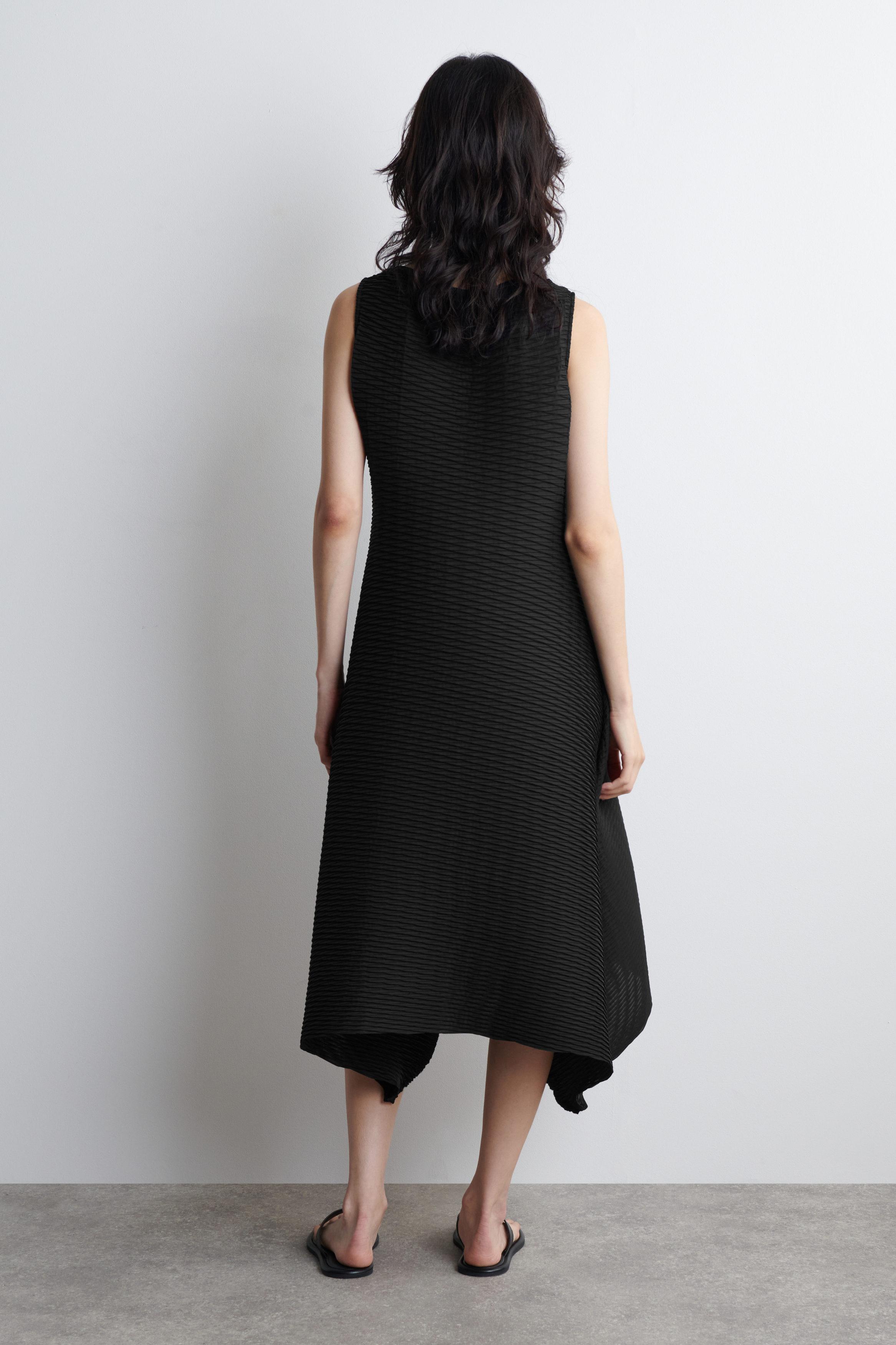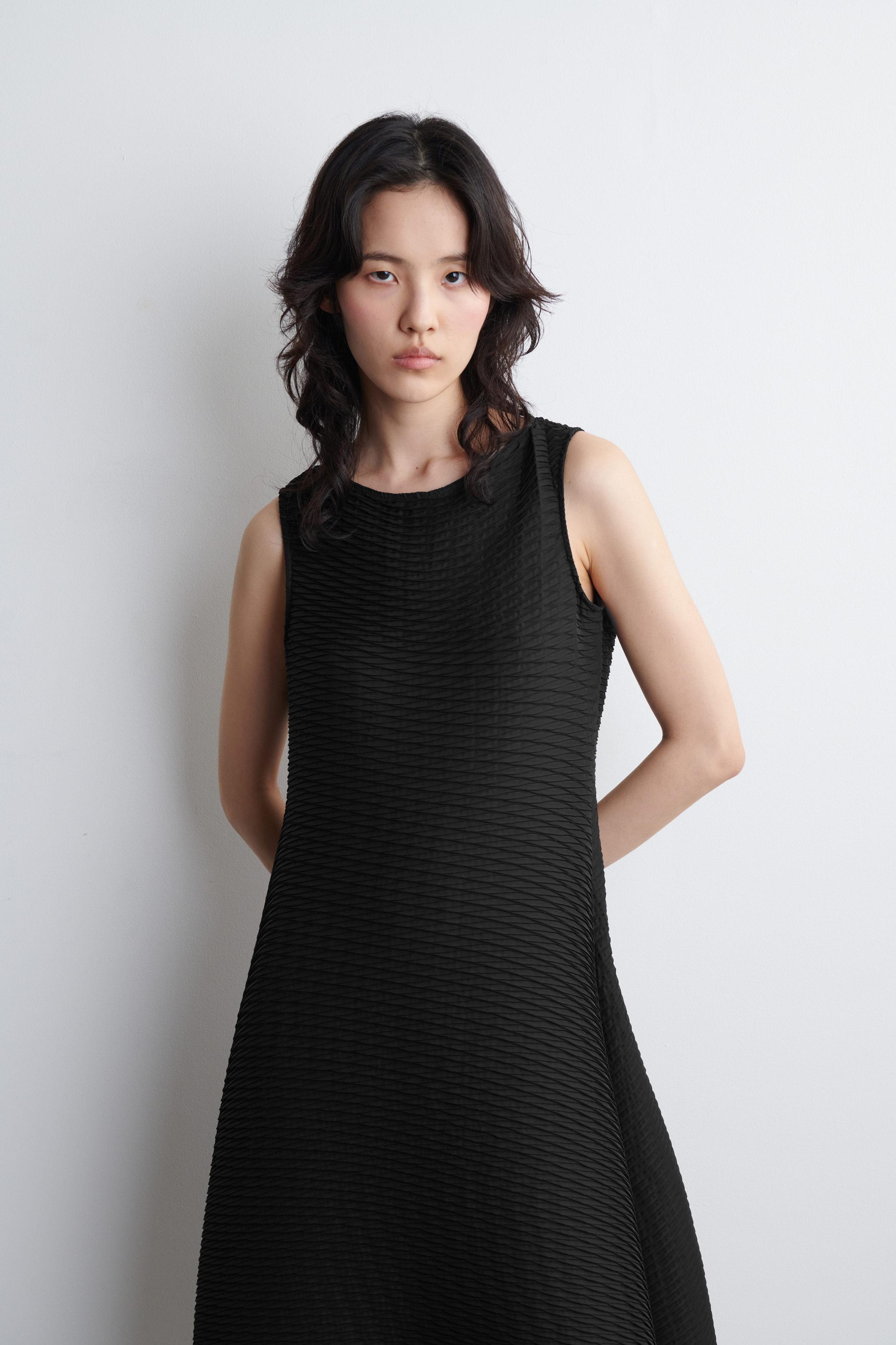 Debuted on the Spring Summer 2025 runway, this striking dress has a sculptural silhouette that falls with buoyant movement. It's made from structured, springy fabric with all-over rippled folds that create surface interest, while the neckline and curved hem are laser-cut for a precise finish.\u0026nbsp;Regular fitRecycled polyester is polyester made from PET bottles or end-of-life textile waste. The PET bottles or textile waste is mechanically recycled and processed into new yarn.\u0026nbsp;Shell: 100% Recycled polyester. Excluding trims / Machine wash\u0026nbsp;Back length of size EU 36 is 102cm / Model wears a size EU 36