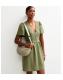Channel easy summer style with this dark khaki mini dress. Its flattering V-neckline and playful flutter sleeves make it a stand-out warm-weather staple.