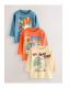 Blue/Orange/Yellow Animals Long Sleeve Graphic Print T-Shirts 3 Pack (3mths-7yrs)