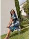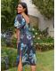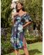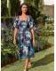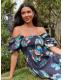 Navy Kew Gardens Puff Sleeve Off Shoulder Midi Dress