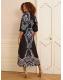 Love & Roses Black Bohem Printed V-Neck Puff Sleeve Midi Dress