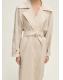 Tejido 100% de lino. Diseño largo. Diseño recto. Cuello pico con solapa. Solapas con muesca. Solapas amplias. Manga larga con puño de tira abotonada. Cinturón desmontable. Dos bolsillos laterales. Cierre de lazo. Colección Selection. Una selección de prendas refinadas, confeccionadas con tejidos de calidad para construir un armario femenino y contemporáneo