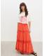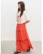 Oliver Bonas Orange Coral Scalloped Cutwork Tiered Midi Skirt