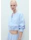 Tejido 100% de lino. Diseño crop. Cuello redondo. Manga larga. Dos bolsillos de solapa en la parte delantera. Bajo fruncido elástico. Cierre de cremallera en la parte delantera. Total look