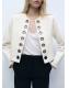 Tejido mezcla de algodón. Diseño recto. Cuello redondo. Manga larga. Detalles troquelados. Sin cierre. Forro interior. Esta prenda pertenece a nuestra colección de evento, diseñada para convertirte en la invitada perfecta en cualquier fiesta, boda o ceremonia