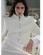 Diseño recto. Diseño crop. Cuello de tira. Manga larga. Cierre de botones en la parte delantera. Botones efecto joya. Forro interior