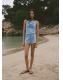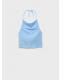 Tejido 100% algodón. Diseño recto. Detalle de strass. Cuello halter. Cierre de lazo en cuello y espalda. Total look