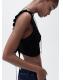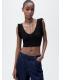 Tejido de punto medio. Diseño crop. Diseño entallado. Detalles calados. Cuello escotado. Sin mangas. Volantes en los tirantes. Espalda abierta. Cierre de lazo en la espalda