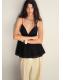 Tejido de algodón. Diseño bordado. Cuello de pico. Diseño recto. Sin mangas. Tirantes finos. Lazos decorativos en la parte posterior. Sin cierre. Forro interior