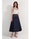 Cotton Poplin Top Stitch Detail Woven Pleat Skirt