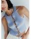 Tejido de punto fino. Diseño recto. Cuello redondo. Sin mangas. Cierre de lazos en la parte delantera. Detalle de abertura. Diseño entallado