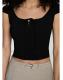 Diseño crop. Escote redondo. Manga corta. Lazo decorativo. Detalles fruncidos. Diseño entallado. Cierre delantero con botones