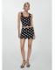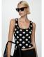 Tejido de punto fino. Diseño crop. Estampado de lunares. Escote redondo. Tirantes anchos. Sin mangas. Total look. Diseño entallado