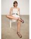 Diseño crop. Palabra de honor. Sin mangas. Cierre de cremallera invisible en la parte delantera. Total look. Diseño de rayas. Diseño entallado