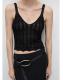 Tejido de punto grueso. Diseño crop. Escote de pico. Sin mangas. Tirantes finos. Total look. La modelo mide 1,78 y lleva una talla S/36. Diseño entallado