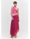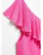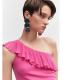 Tejido de punto fino. Diseño asimétrico. Diseño crop. Cuello asimétrico. Maxi volante. Sin mangas. Sin cierre. Diseño entallado