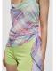 Tejido fluido. Diseño recto. Diseño crop. Diseño asimétrico. Estampado de cuadros. Escote redondo. Tirantes finos. Sin mangas. Detalle de volante. Detalle fruncido