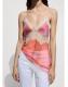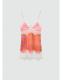Tejido fluido. Tejido semitransparente. Diseño recto. Diseño largo. Estampado de cuadros. Escote de pico. Sin mangas. Tirantes finos. Terminaciones de encaje