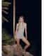 Tejido de punto fino. Cuello cisne. Manga corta. Total look. Diseño entallado