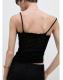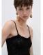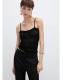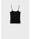 Tejido de punto fino. Tejido mezcla de algodón. Cuello escotado. Tirantes finos. Detalles calados. Terminaciones con volantes. Diseño entallado
