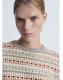 Tejido de algodón. Tejido de punto grueso. Diseño estampado. Estampado geométrico de colores. Estampado navideño. Manga larga. Cuello redondo. La modelo mide 1,78 y lleva una talla S/36