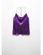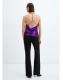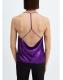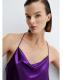 Tejido fluido. Efecto satinado. Diseño recto. Cuello escotado. Escote drapeado. Sin mangas. Tirantes finos. Espalda cruzada. Forro interior. Colección fiesta y ceremonia