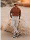 MAUVAIS Brown Elysee Ribbed Revere Polo