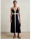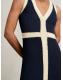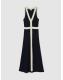 The Lou dress is knitted in a ribbed construction and cut to a modern midi length. Contrasting bands define the silhouette, framed by braided cable stitching for a crafted, tactile finish. A V-Neckline and sleeveless shape complete the look with understated elegance. Rib knit. Craft stitching. Contrasting bands. V-neckline. Sleeveless. The model is wearing a size S. Measurements of model: 5ft 9 / 175cm.62% Viscose, 38% Nylon.