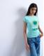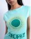 This T-shirt is crafted from soft, stretchy jersey with a ribbed texture. It features a slash neck, cap sleeves, graphic print to the front and a slim fit.