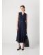 Neckline: Low-cut v-neckCollar: Lapel collarFastening: ButtonPattern: PinstripedDetails: Belt included
