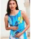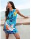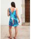 Bright Blue Palm Print Scoop Back Mini Shift Dress With Linen