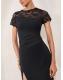 Lipsy Black Short Sleeve Lace Mix Bodycon Midi Dress