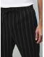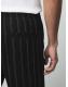 Black/White Regular Tapered Fit Cotton Linen Striped Trousers