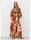 Dark Red Paisley Print Twist Front Maxi Shirt Dress
