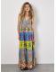 Apricot Yellow Multi Tier Pineapple Print 100% Cotton Dress