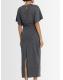羊毛迷笛连衣裙 - 石色 - 女士 - Brunello Cucinelli - 背面钥匙孔式开口设计纽扣开合.