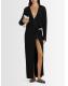 粘胶纤维混纺V领长款连衣裙 - 黑色 - 女士 - The Attico - 围裹式幅面配有正面开合.