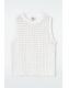 The COS womenswear team bring modernised craftsmanship to the knitwear collection this season. Offered in a fresh white hue, this vest is knitted from cotton blend in a open rope stitch and can be styled over a tank top when the weather starts to warm. The crew neck and sleeveless detail are ribbed for tactility.\u0026nbsp;Regular fitRecycled polyester is polyester made from PET bottles or end-of-life textile waste. The PET bottles or textile waste is mechanically recycled and processed into new yarn\u0026nbsp;Shell: 56% Cotton, 40% Recycled polyester, 3% Recycled polyamide (Recycled nylon), 1% Elastane. Excluding trims / Machine wash\u0026nbsp;Back length of size S is 53cm / Model wears a size S