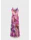Diseño largo. Estampado floral. Cuello escotado. Sin mangas. Tirantes finos. Detalle godets. Cierre de lazo en la espalda. Forro interior. Esta prenda pertenece a nuestra colección de evento, diseñada para convertirte en la invitada perfecta en cualquier fiesta, boda o ceremonia